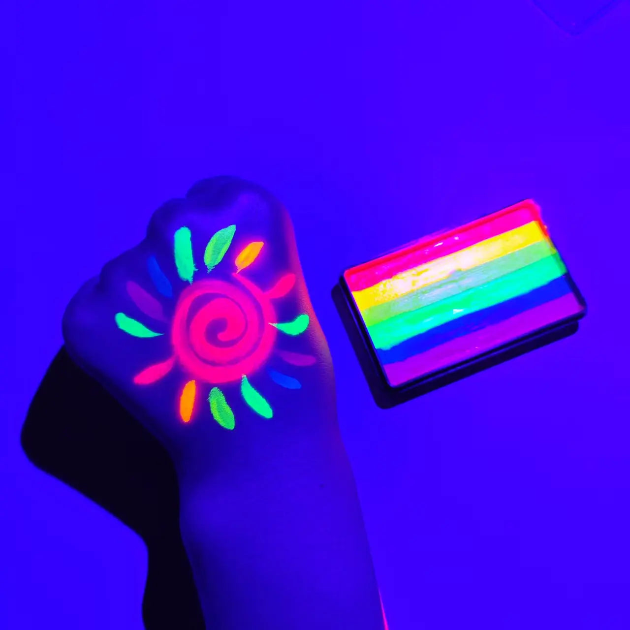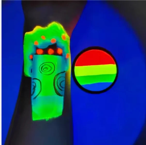 The neon effect of the paint adds a vibrant touch to your makeup, making it perfect for nightclub parties or raves.