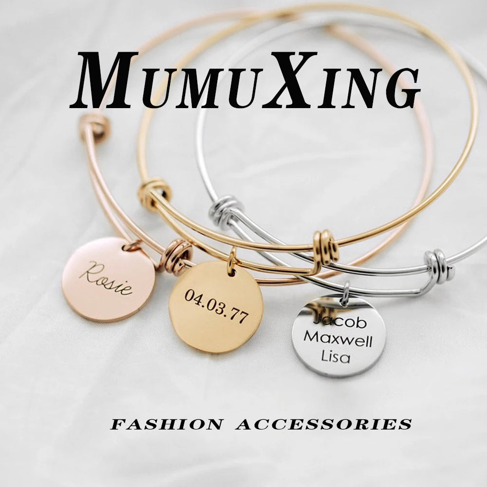 Bangles for Women Personalized Custom Carving 1-4 Names Round Pendant Stainless Steel Friendship Bracelet Jewelry Pulsera Mujer