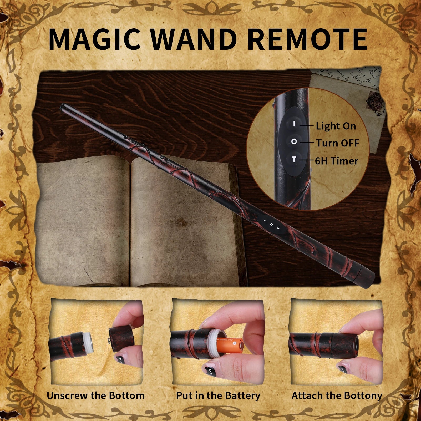 MAGIC WAND REMOTE CONTROL - Want to use magic like the wizard in the movie? The included 14-inch magic wand remote control adds a touch of fun and fantasy to your decor. This magic wand can realize your little wish, just click the switch button of the wand, and you can easily turn the on and off the candlelight. Unlike others, we have added a separate button to turn on the wand light. To activate the wand light, you can press and hold the middle button.