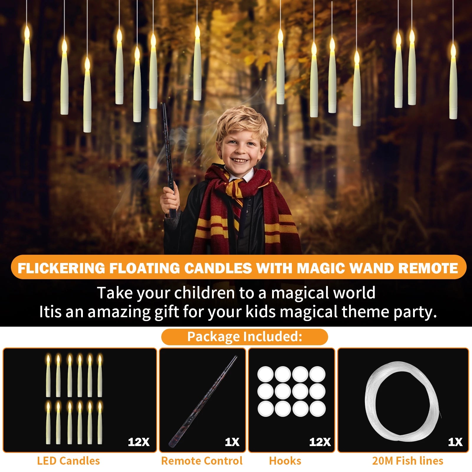 VERSATILE INDOOR DECOR - LED floating candles are perfect for Birthday decorations. This set of magic candles is a truly special theme party decoration. Instead of ordinary candle lights, using a magic wand to illuminate the candles on your party, porch and in your living room is a magical trick that will leave the kids next door drooling with envy! It will turn you into a real magician with genuine magic on this street!
