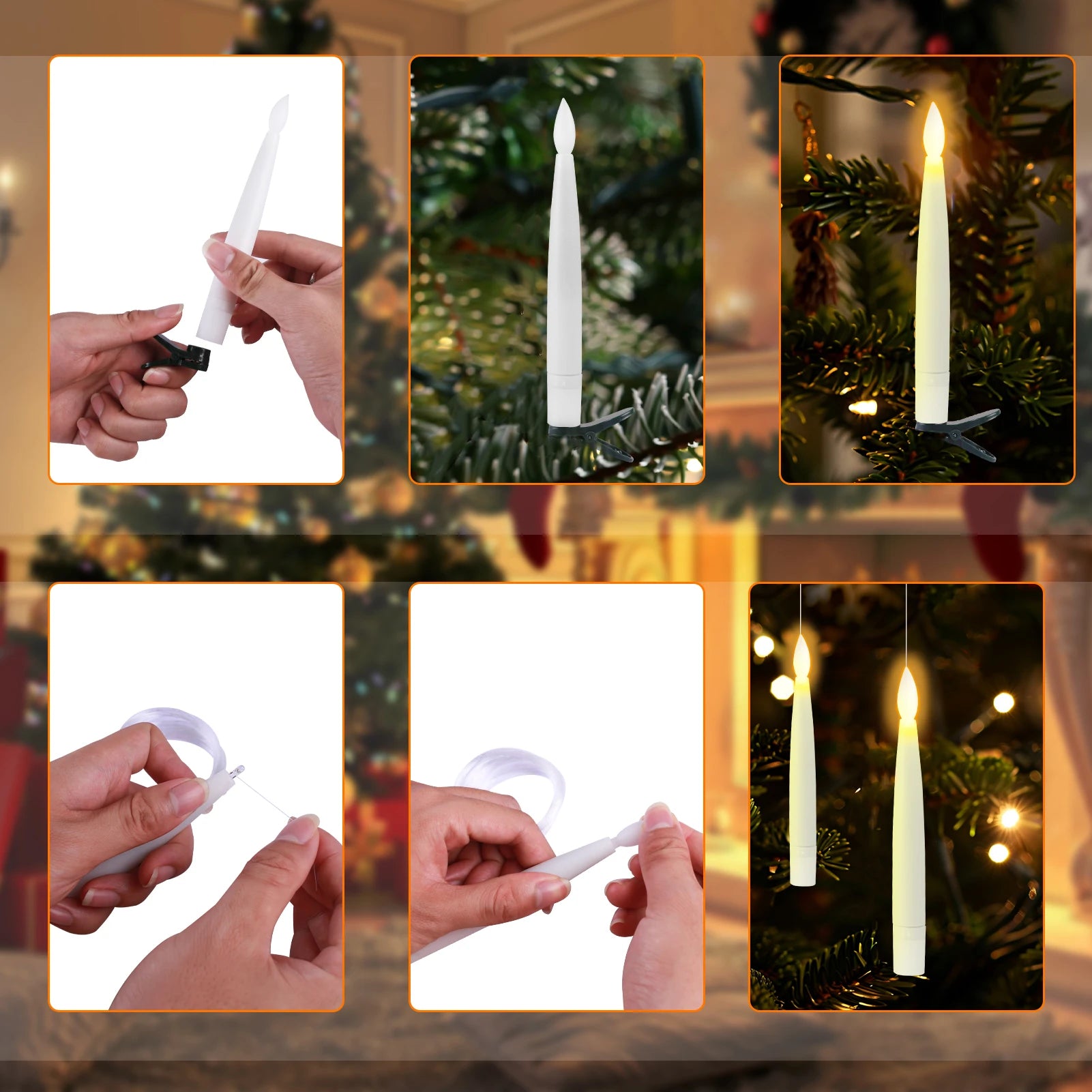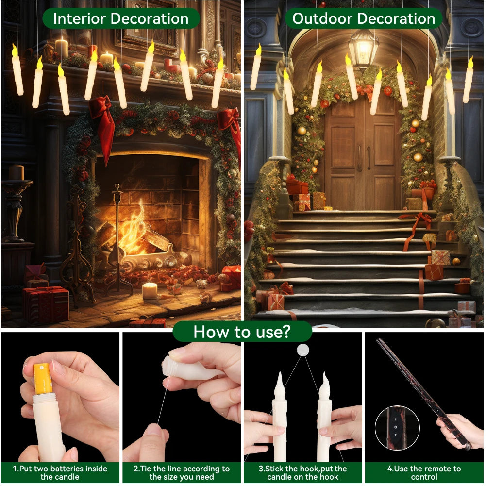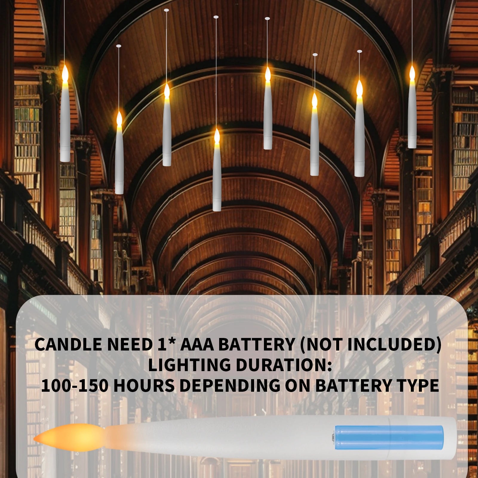 CREATE A MAGICAL AMBIENCE - The 8/12 packs of flickering flameless floating candles come with a fishing line (transparent), you can easily cut the length you like and thread it through the top, making it easy to hang straight and even. You can create a magical floating candle effect anywhere you like. The flickering warm white light emitted by these candles creates a magical atmosphere, perfect for adding a touch of enchantment to your home decor, Halloween Decorations, parties, weddings, or any special occasion.