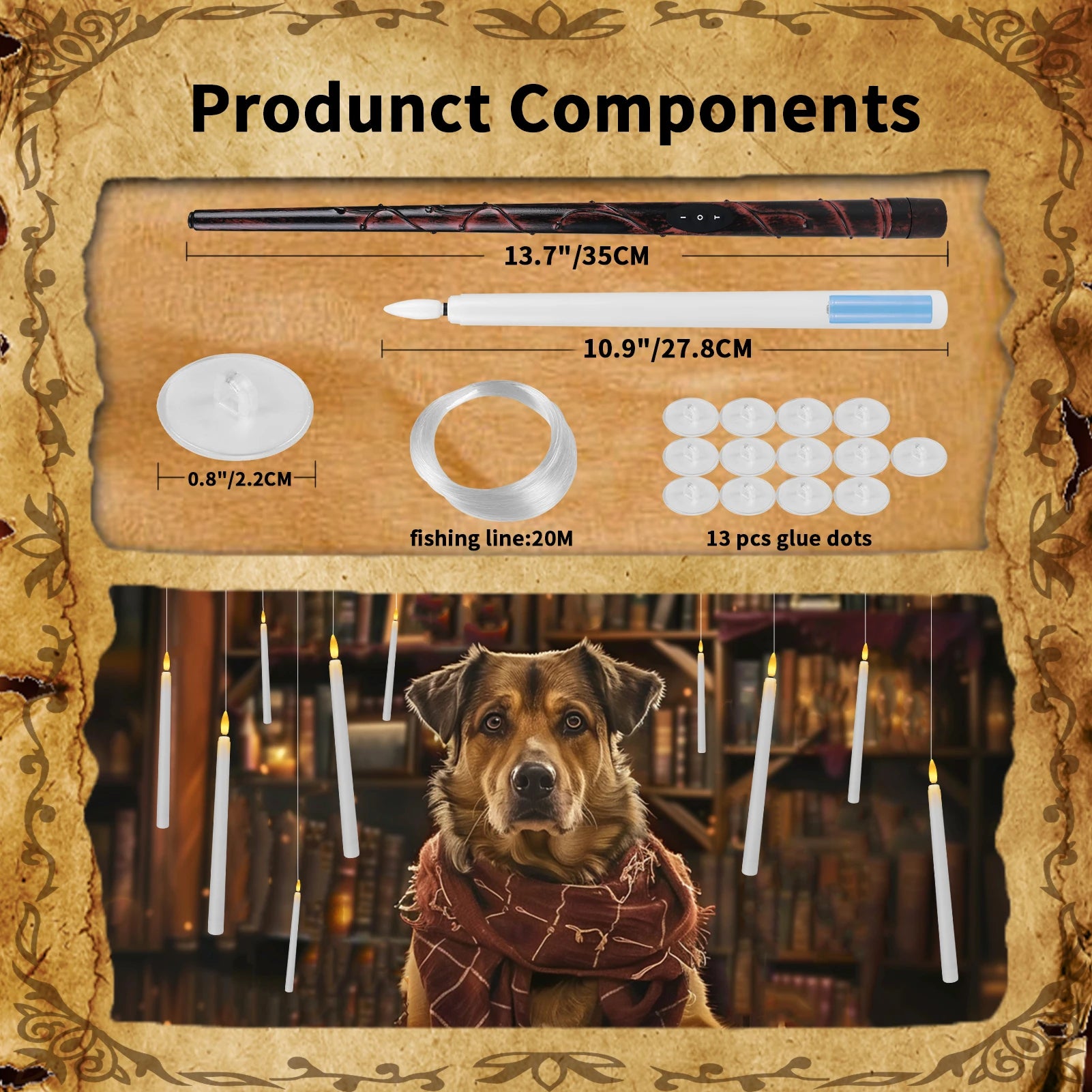 CONVENIENT & EASY TO USE - The floating candles with wand came with sticky hooks and fishing line, hang them wherever you like using the equipped hook(𝗡𝗢𝗧𝗘: 𝗨𝘀𝗲 𝘁𝗵𝗲 𝗵𝗼𝗼𝗸 𝗶𝗻 𝗮𝗿𝗲𝗮𝘀 𝘄𝗵𝗲𝗿𝗲 𝘆𝗼𝘂 𝗱𝗼𝗻'𝘁 𝗻𝗲𝗲𝗱 𝘁𝗼 𝗿𝗲𝗺𝗼𝘃𝗲 𝗶𝘁 𝘁𝗼 𝗽𝗿𝗲𝘃𝗲𝗻𝘁 𝘄𝗮𝗹𝗹 𝗱𝗮𝗺𝗮𝗴𝗲.) or Get creative and find your own unique way to display it. Or just place some of the candles on a shelf or table.