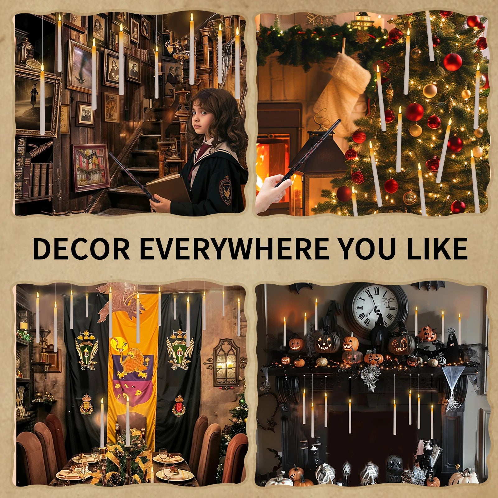 Floating Candles with Magic Wand Remote Control Flickering Warm Light Flameless Taper Candle for Christmas/Wedding/Party Home
