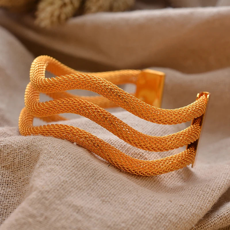 Luxury Vintage Gold Plated Bangles For Women Girls Arabia Bridal Wedding Jewelry Gifts