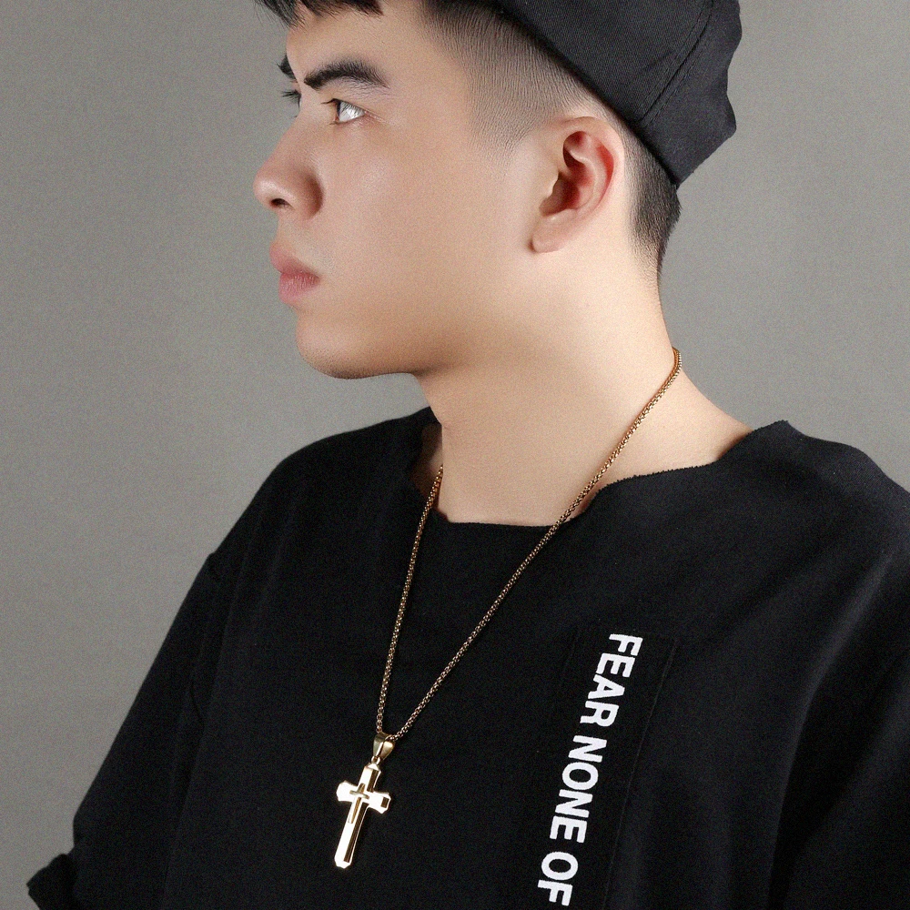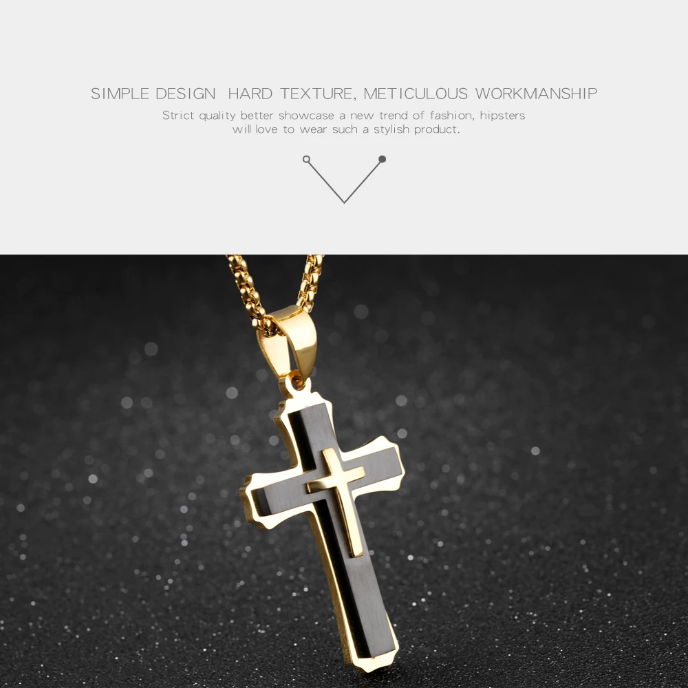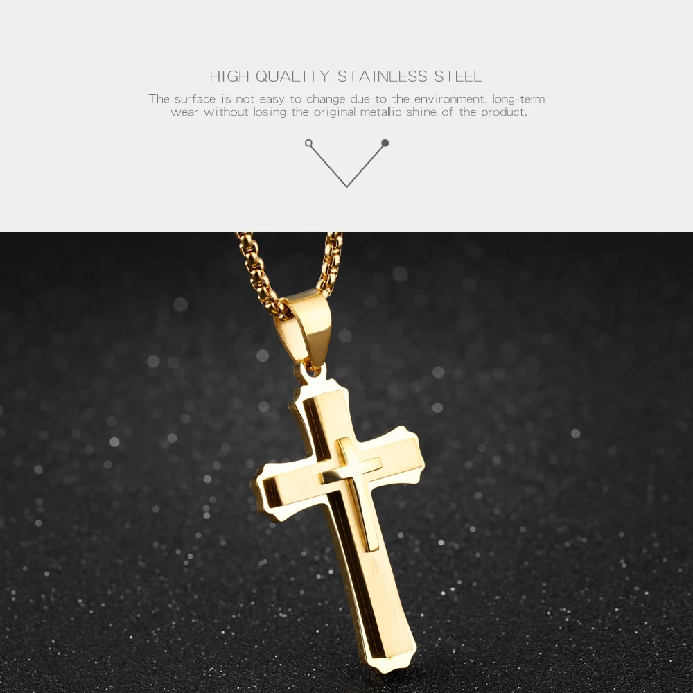 Men Necklaces & Pendants Male Cross Necklace Punk Stainless Steel Chain Fashion jewelry White Black Golden