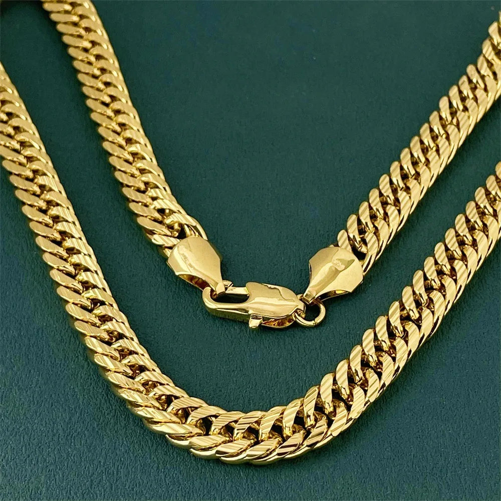 Men's 10MM 60CM Sideways Carved Chain, 24K Gold, AU999 | Gradient gold with gear motifs, youthful edge for modern trendsetters.