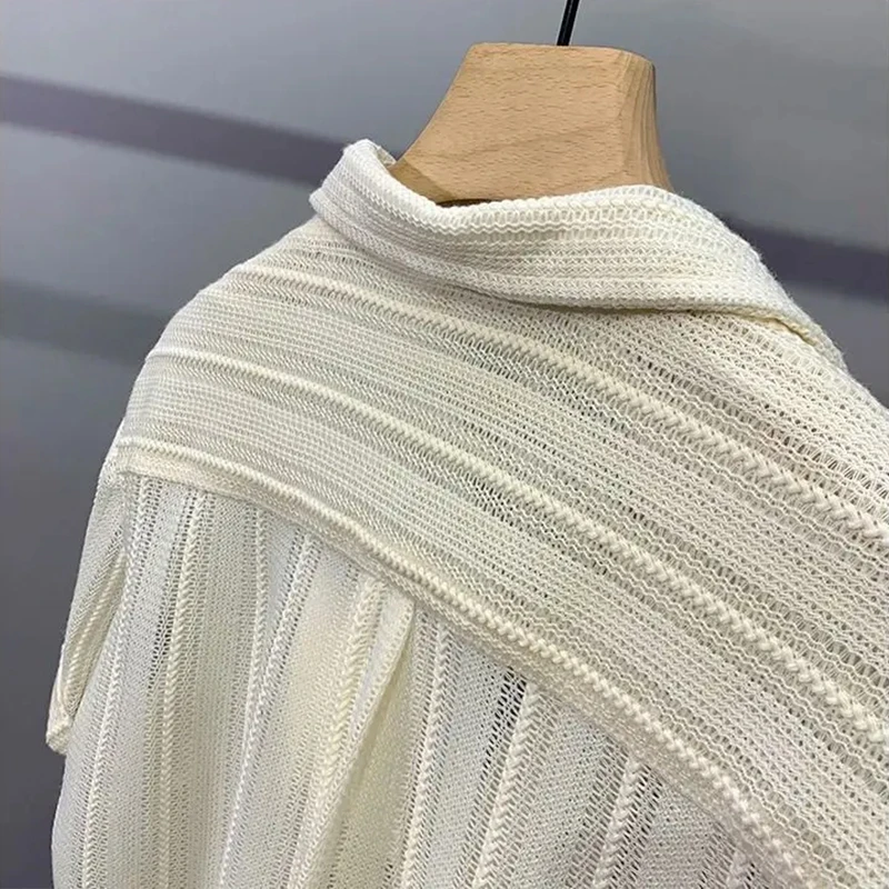 Men's Tops Hollow Short-sleeve Shirt Men Summer Thin Trendy Handsome French Light Luxury Drape Hawaiian Shirts