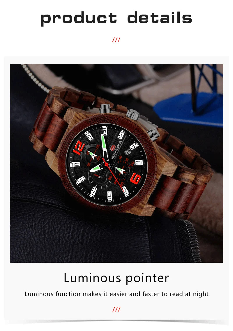Men's Wood Watches Luxury Luminous Multi-function Wooden Watch Men's Quartz Retro Watch Men Fashion Sport Timepieces Relogio