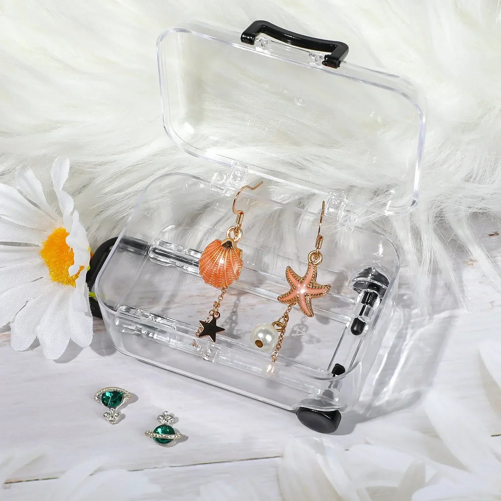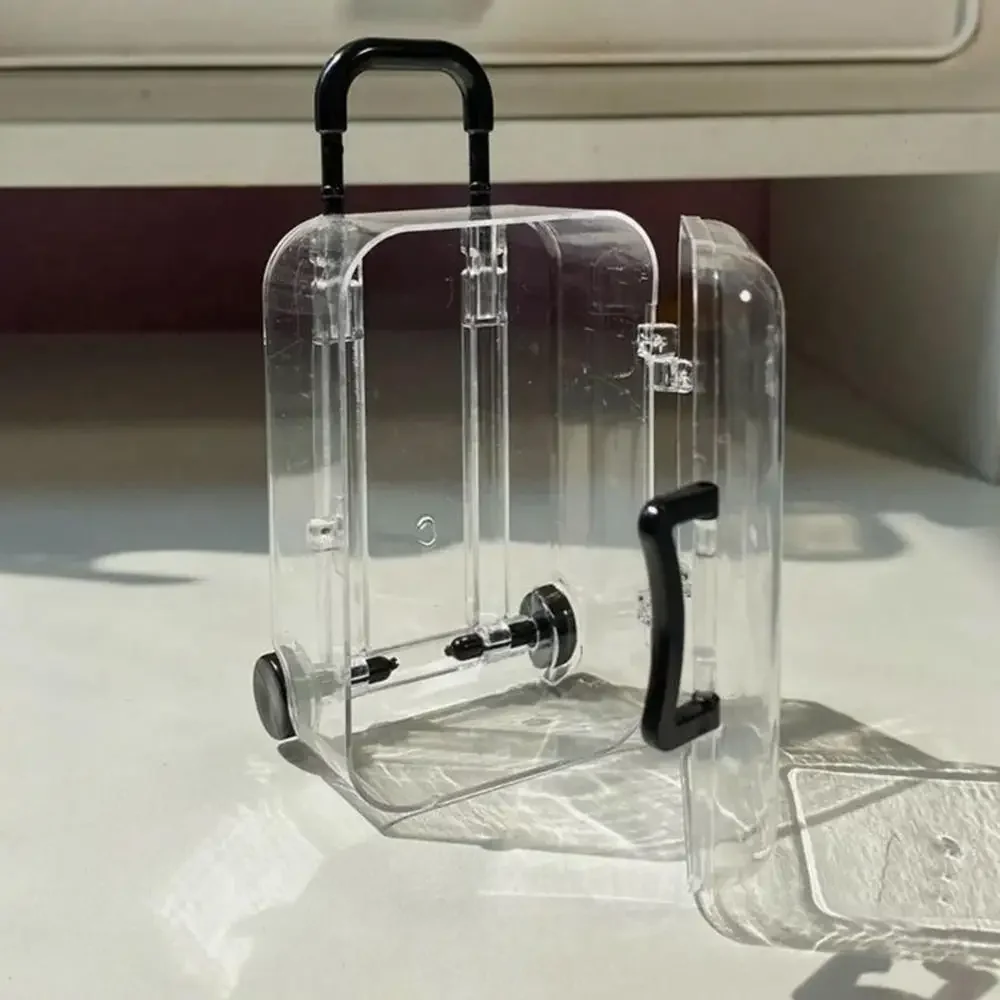 Storage Box Suitcase Shape Mini Transparent Case With Handle Decorative Plastic Jewelry Candy Miniature For Home Desktop