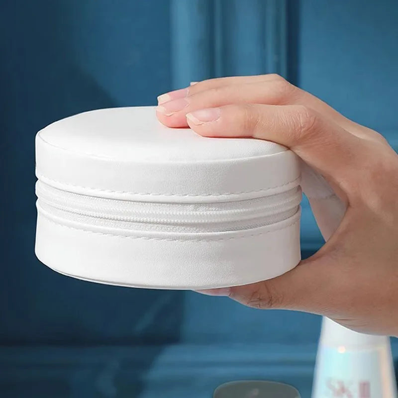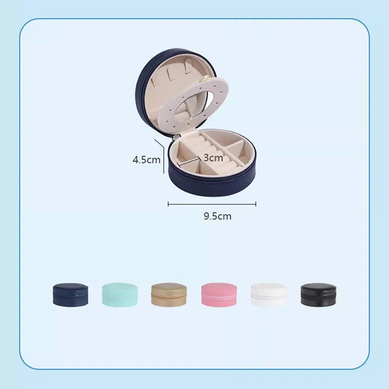This travel jewelry organizer is a small but large-capacity round box. This lightweight jewelry travel case can hold multiple earrings, rings, necklaces, and bracelets.