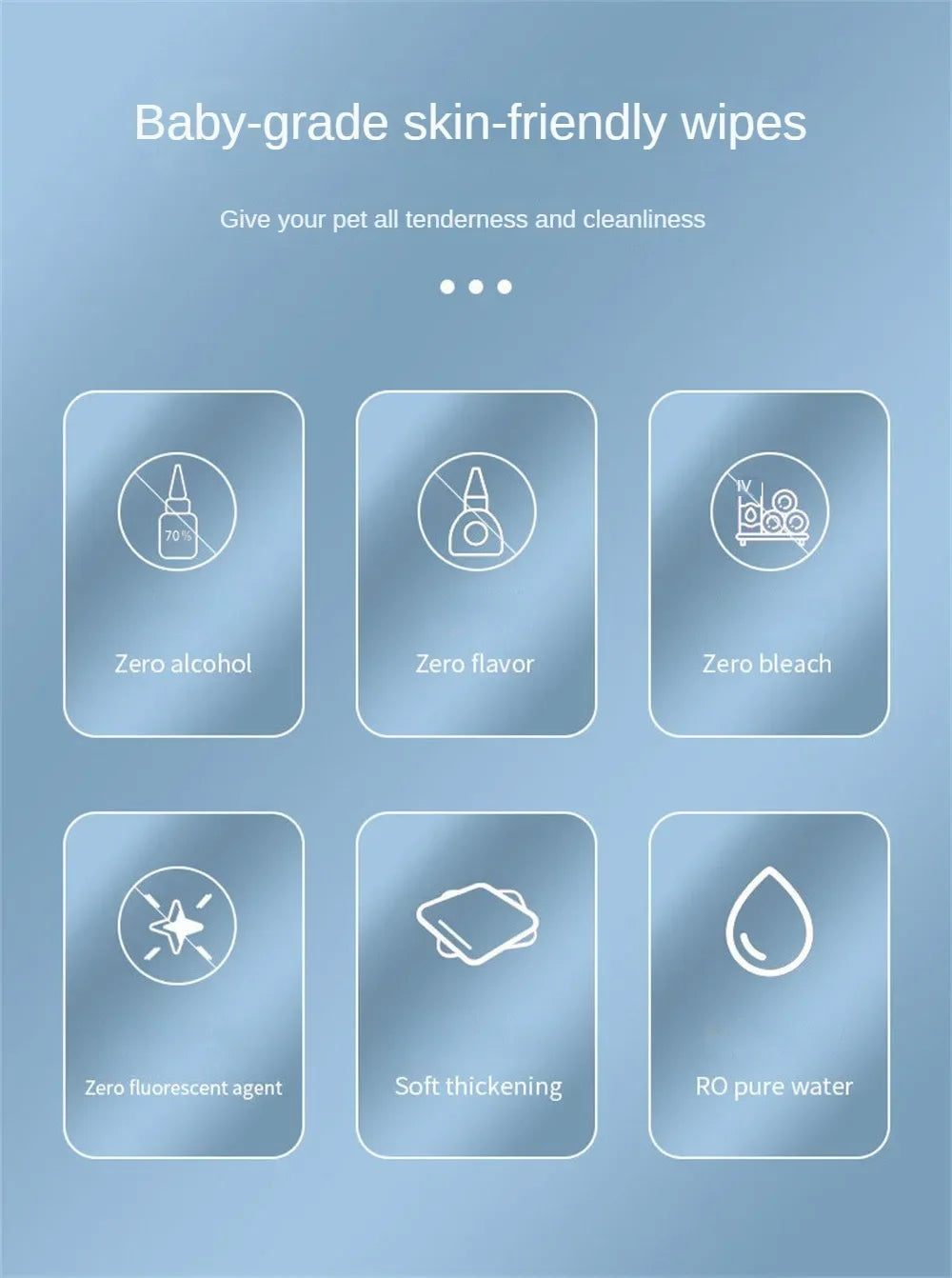 Pet Wipes Ro Pure Water Formula Pet Care Pet Health Care and Cleaning Pet Specific Cleaning Deodorizing Wet Tissue No Wash