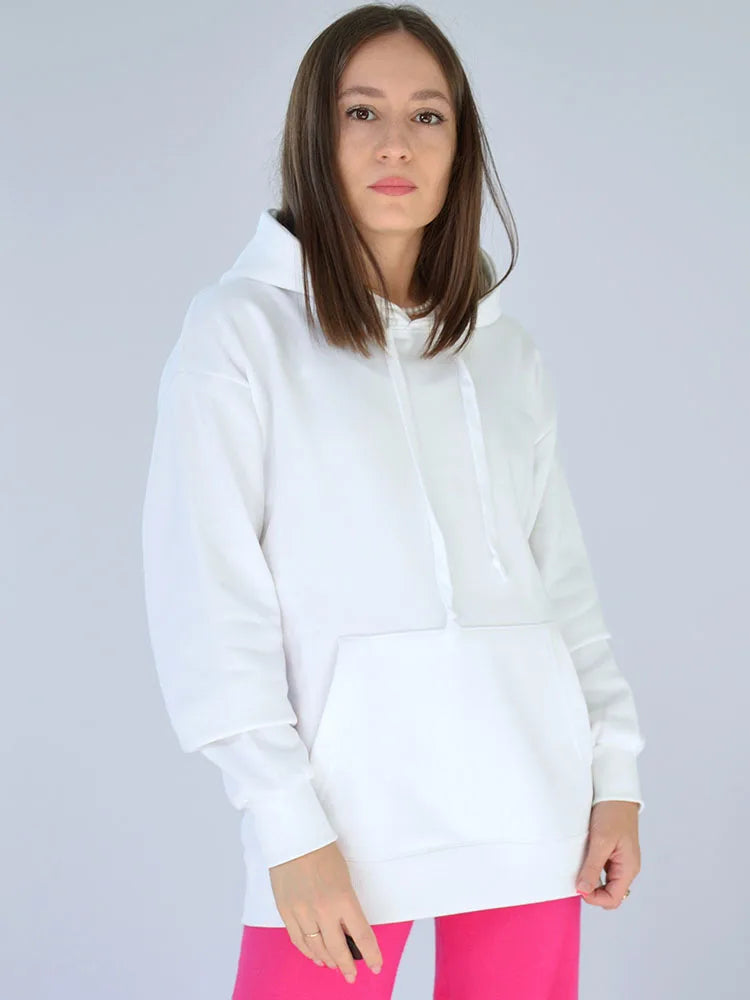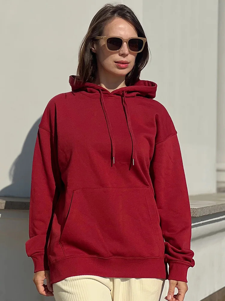 Solid Oversize Hoodies For Women Pocket Casual Loose Hooded Sweatshirt Woman Autumn Cotton Terry Hoodies Women Oversize Pullover
