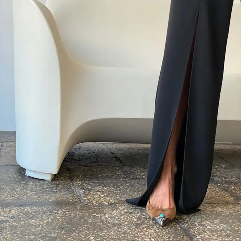 Spring 2021 new women's bell bottom trousers high waist straight split casual flared trousers