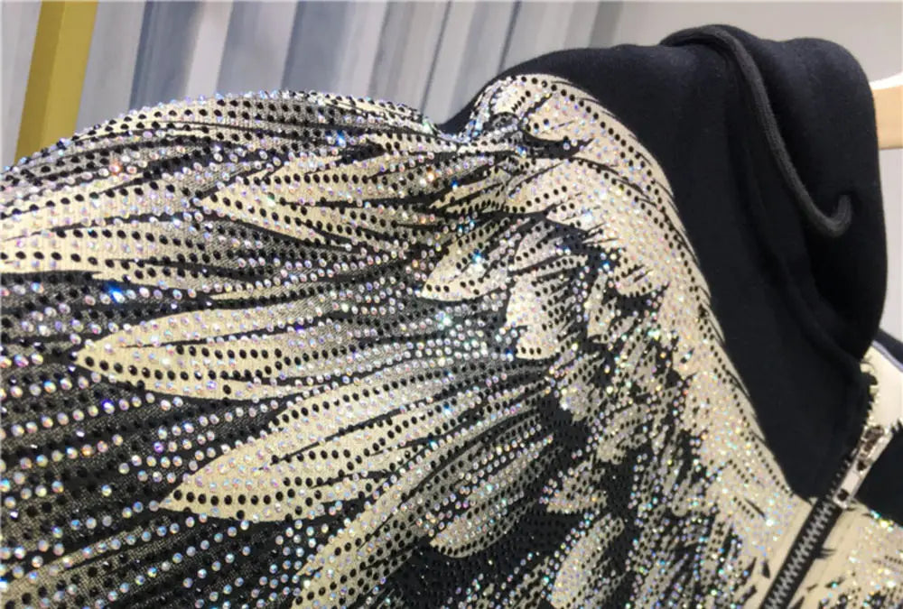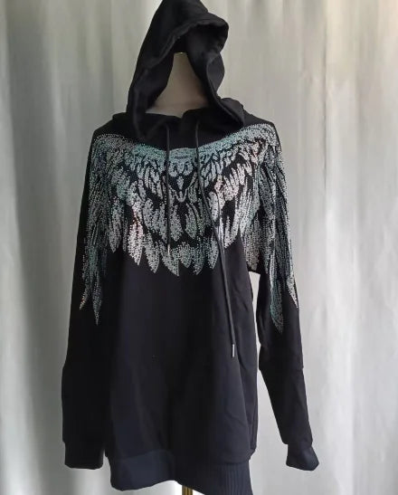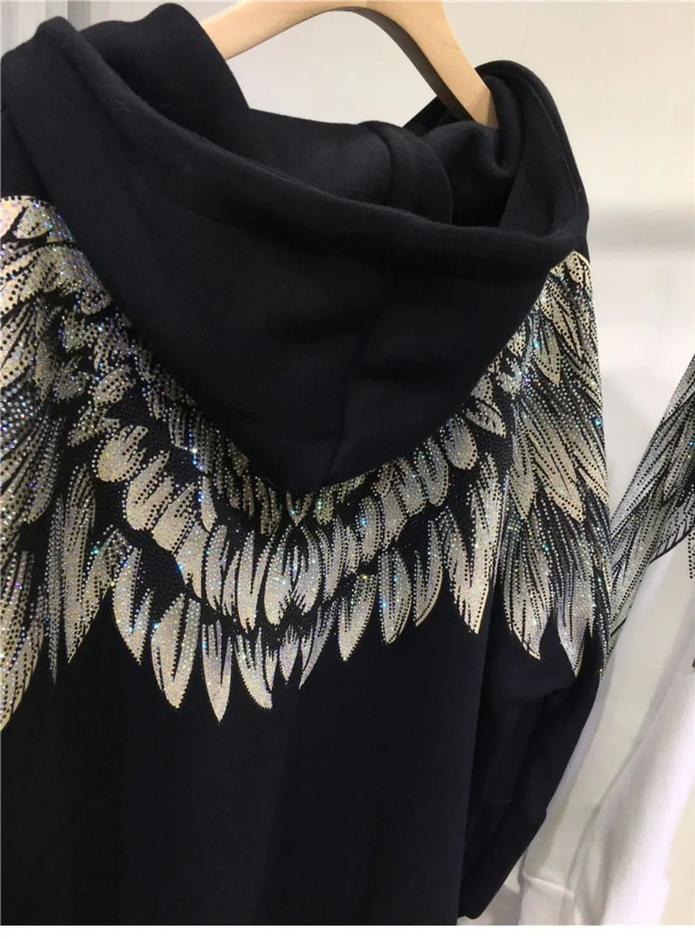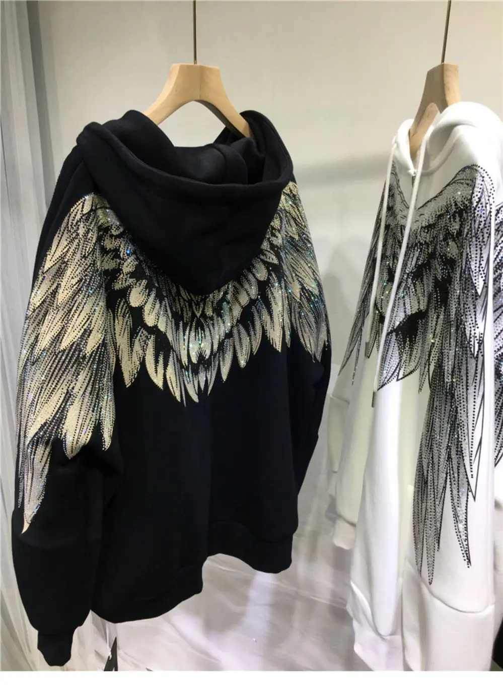 Streetwear Hoodie Women Clothing Harajuku Heavy Diamond Wings Hooded Sweatshirts Casual Fashion Hoodies Y2k Tops 2025 Ropa Mujer