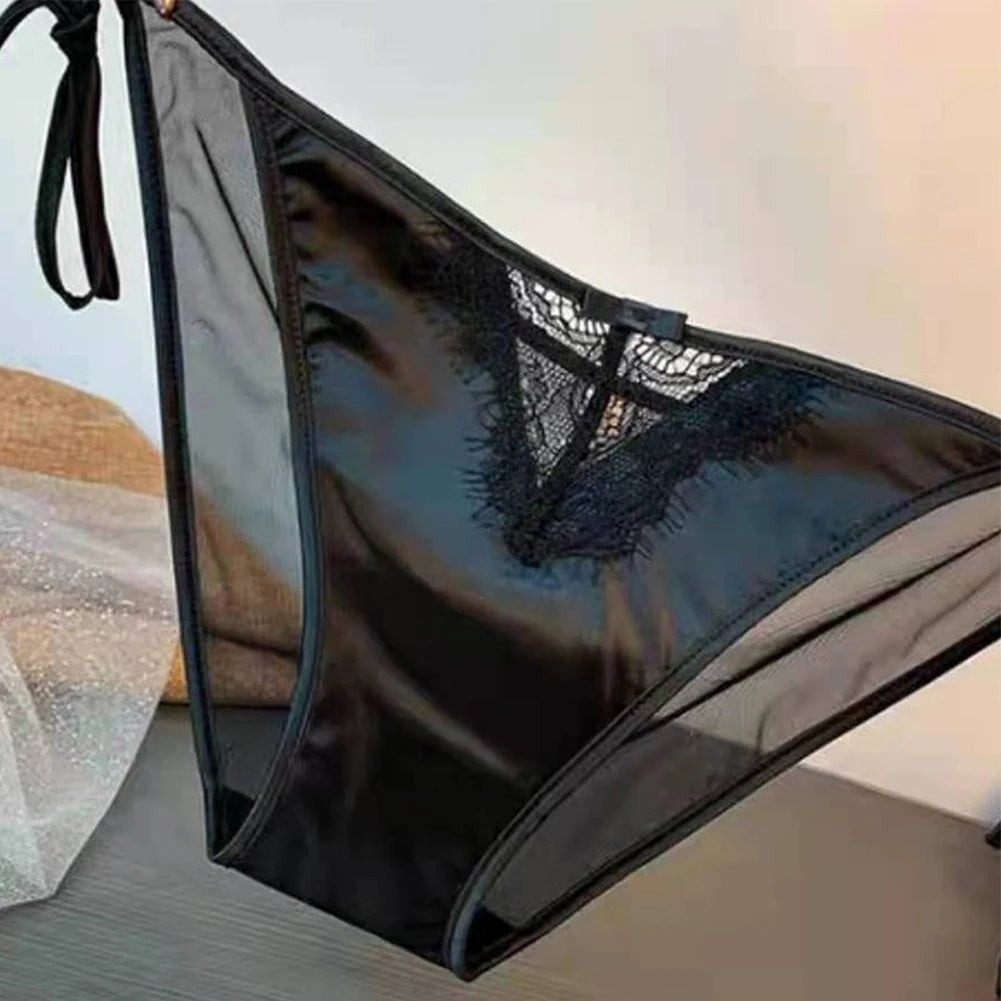 Women Lace Panties Lingerie Soft Silk Satin Underwear Knickers Briefs Seamless Simulated Silk Strap Low Waist Underwear For Lady