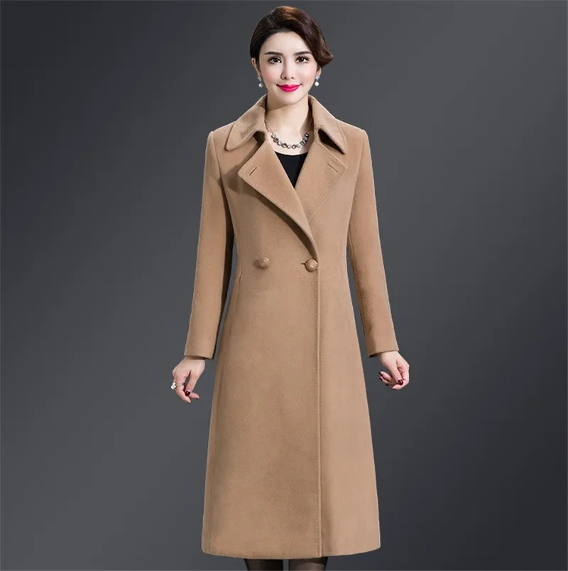 Women Woolen Coat 2024 Autumn Winter Jacket Elegant Long Coat Female Jacket Wool Blends Coat High Quality Abrigos Mujer