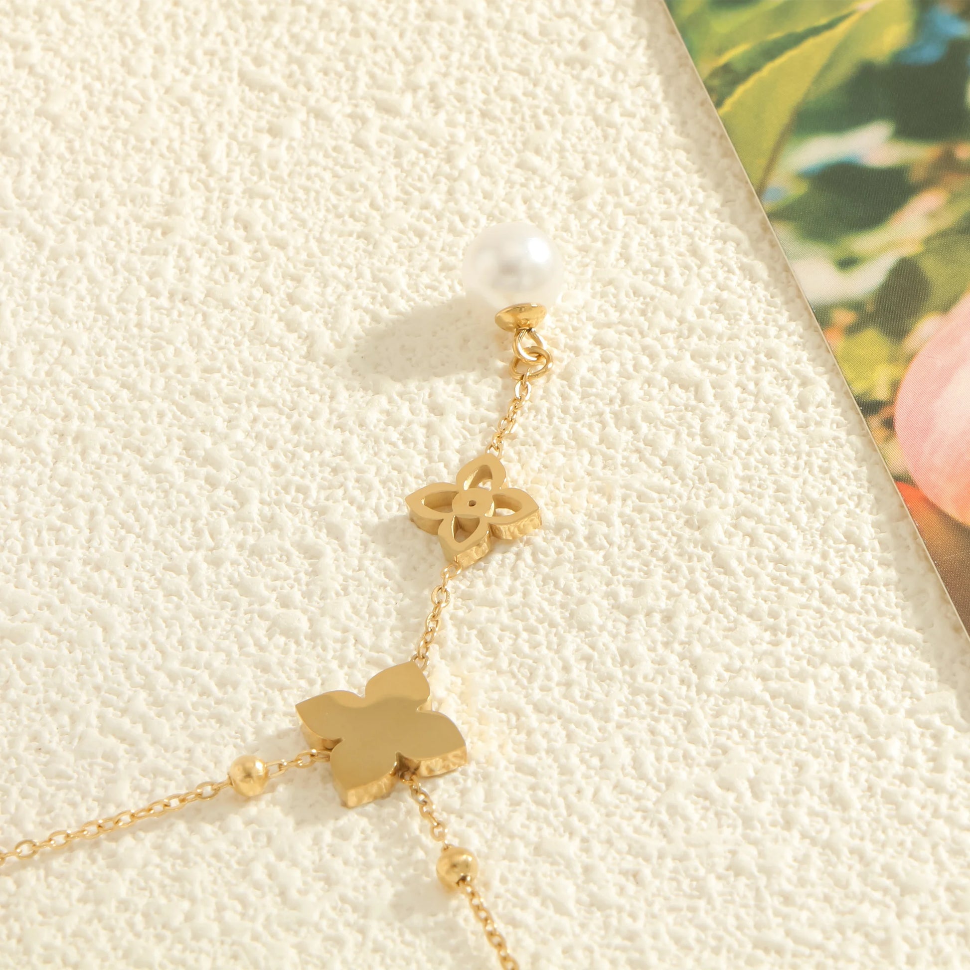 Women's fashion necklace Simple and elegant style double necklace pearl clover pendant inlaid shell Suitable for daily wear