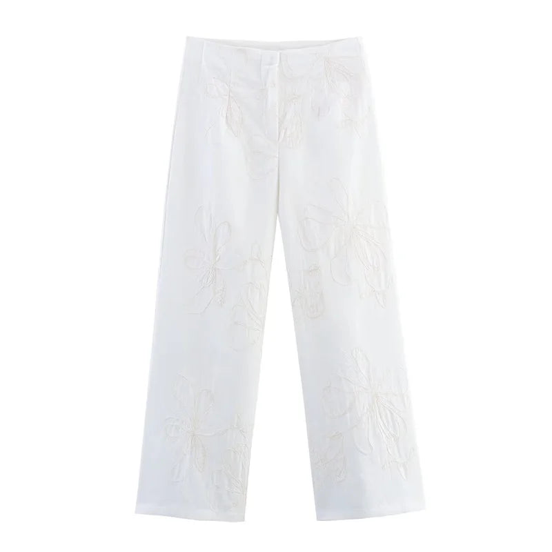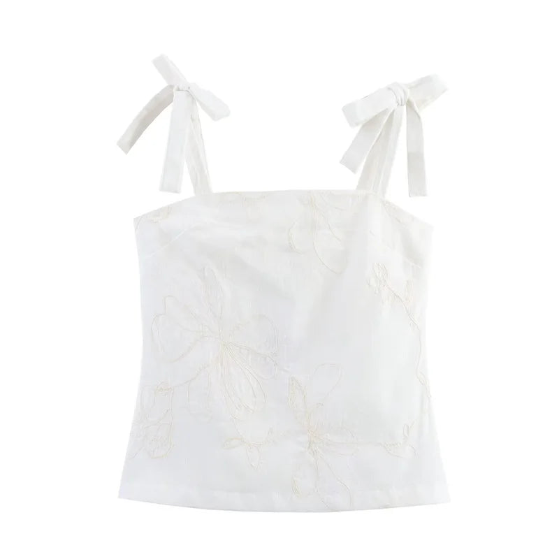 Women's suit New Summer 2025 White Camisole Wide-leg Pants Set Embroidered Trim Sexy Casual Personality Fashion