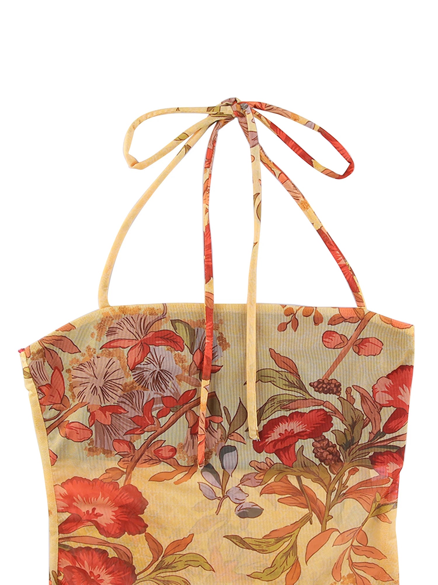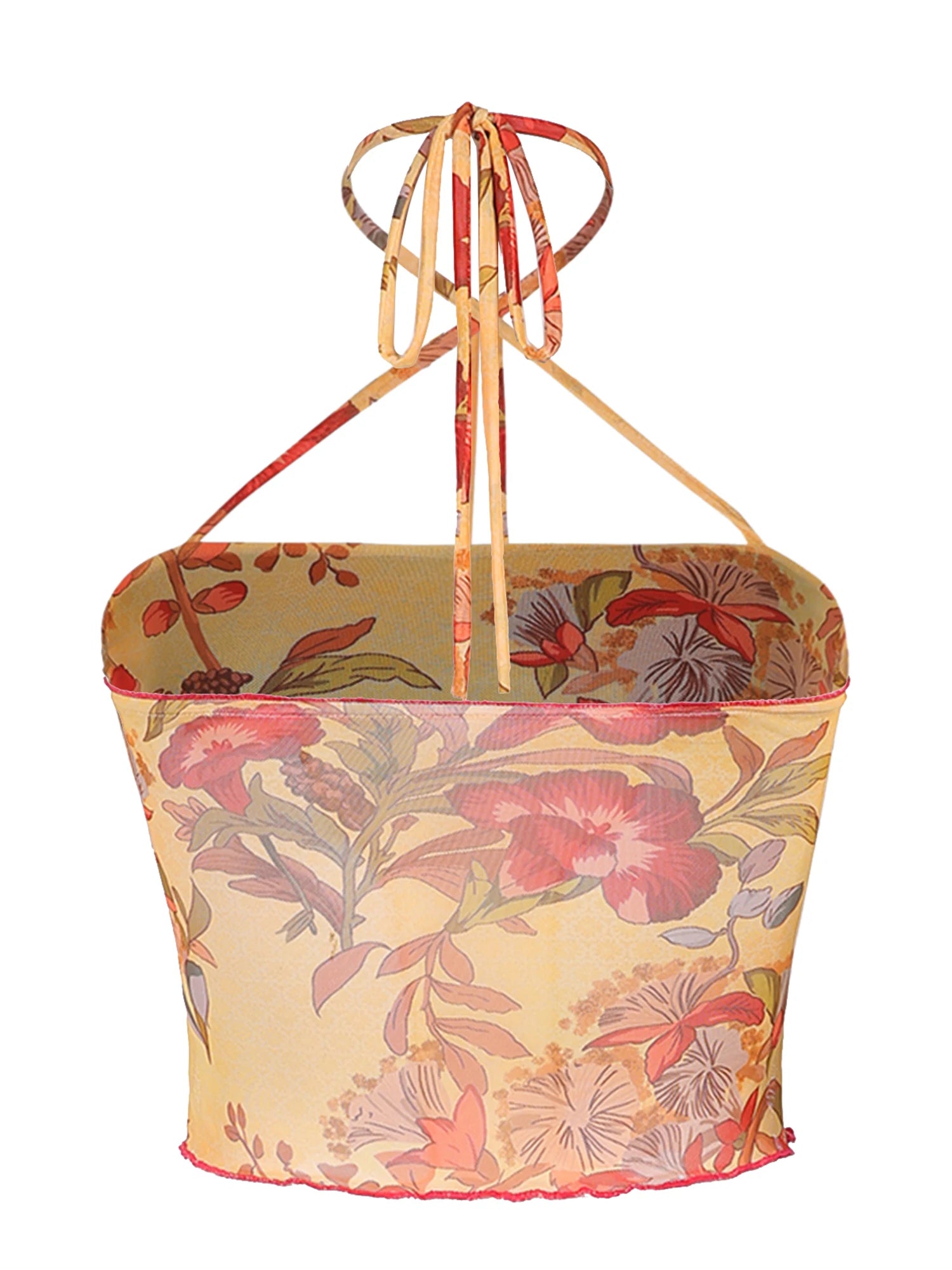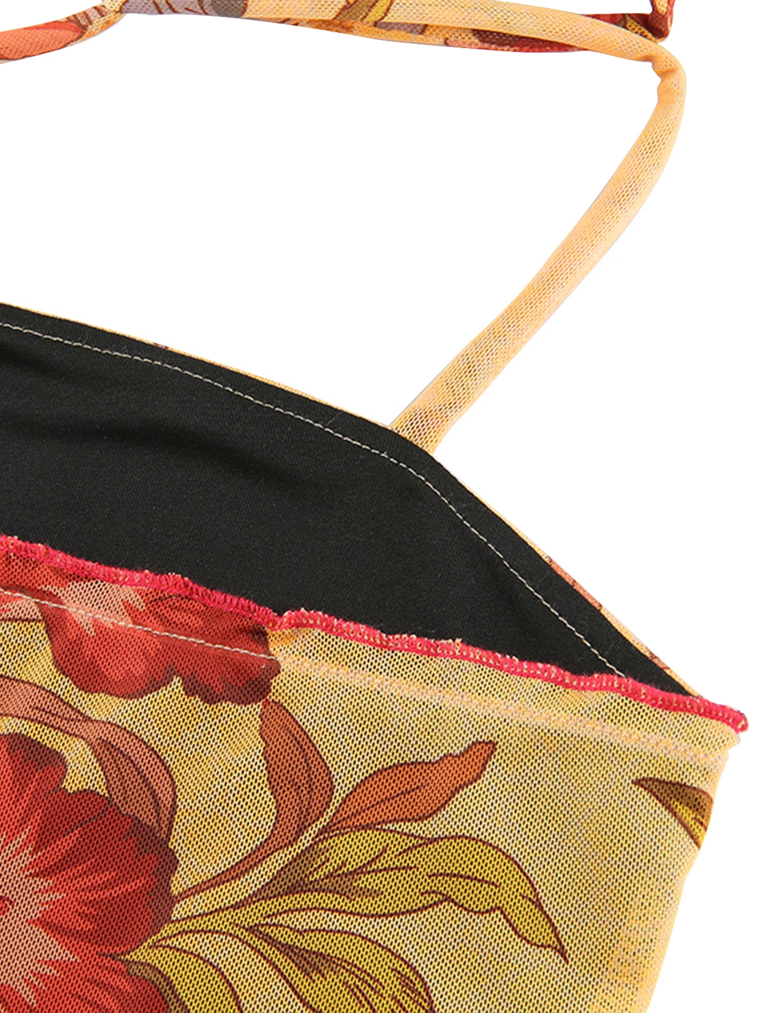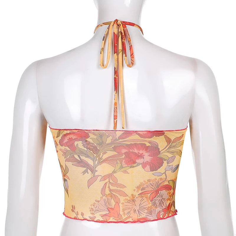Women's Tank Tops E-Girls Vintage Mesh See Through Sexy Crop Top Frill Cross Halter Sweats Female Summer Party Clubwear Y2k