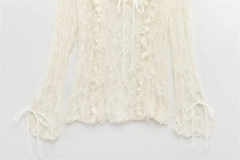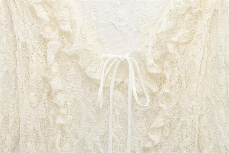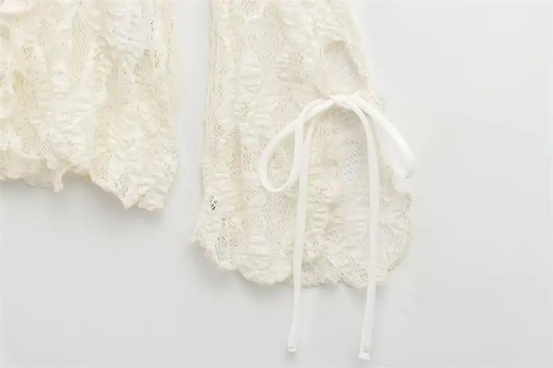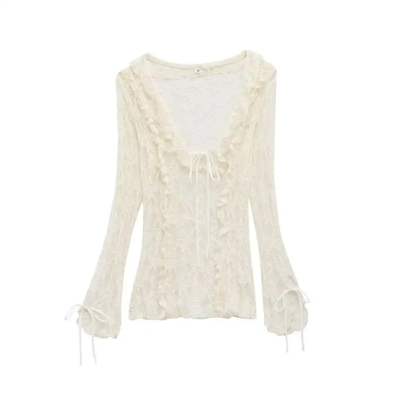 Women's Tops Summer 2025 New Chic Lace Perspective Elegant Holiday Tops Women Street Fashion Slim V-neck Youth Tops